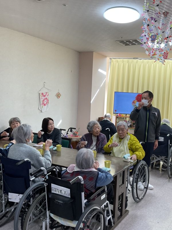 本日は元日の特別昼食として、皆さまと一緒に新年の乾杯からスタートしました。